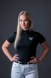 Short sleeve technical riding shirts with zip collar.